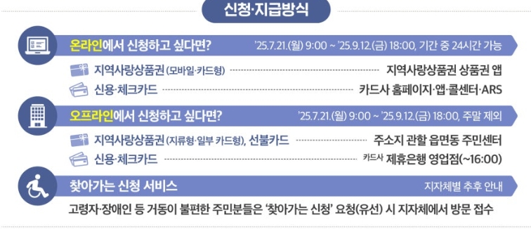 카드사 홈페이지나 지역사랑상품권 앱, 주민센터 또는 은행 창구에서 신청.