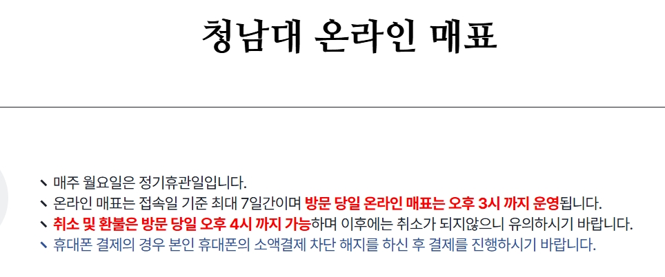 - 문의사항이나 단체 관람 예약은 전화로 먼저 확인하는 것을 추천드립니다.